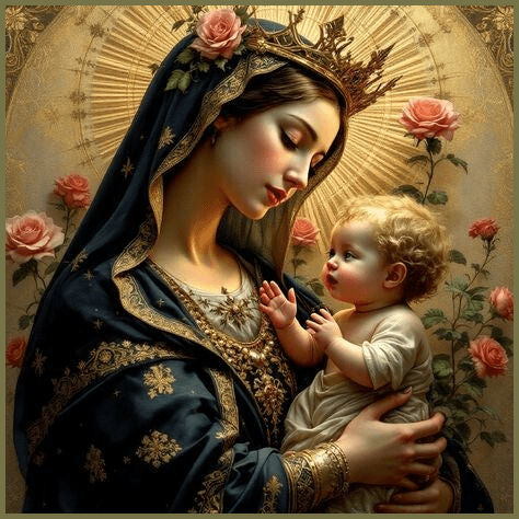 In the early Church, Judeo-Christians viewed Mary as an antitype of the Gebirah, a queen associated with the royal lineage of David. They recognized her Divine Maternity as a fulfillment of this tradition, referencing Scripture such as Luke 1:31-33 and 1:35. St. Matthew further reinforces this continuity between Jewish tradition and the New Dispensation by highlighting that Mary, the mother of Jesus, was present when kings from distant lands came to pay homage and offer gifts to her Son. Additionally, upon his announcement to Mary, the archangel Gabriel conveyed the message: “The Lord is with you” (Lk 1:28). This relationship emphasizes the close connection between Mary and Jesus within the Kingdom of Heaven, underscoring their shared royal heritage.