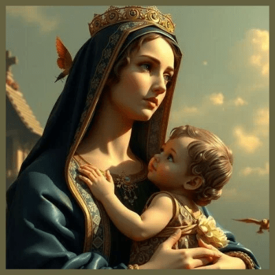 Mary’s destiny is deeply intertwined with that of her Son, Jesus. Following the ascension of the Messiah King into heaven, where he took his place at the right hand of God, Mary was also believed to have been assumed into heaven, both body and soul, through divine power after her earthly life. In her heavenly role, Mary is recognized as the Queen Mother, symbolizing her Son’s rightful claim to the throne of David within his eternal royal court. Additionally, she acts as an intercessor and Mediatrix of Grace for the faithful while reigning alongside her Son in the spiritual realm, as referenced in 2 Timothy 2:12.