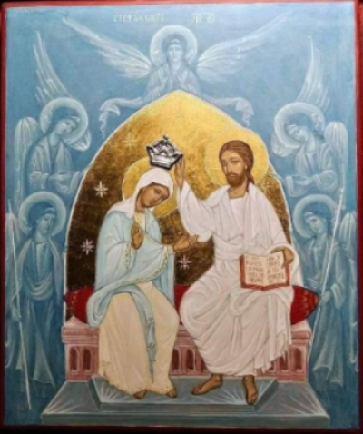 upon him as he sits with the Father, it was fitting that God’s Mother should possess what
