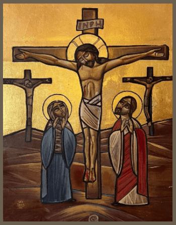 The phrase “Woman, behold your son – Behold your mother” is delivered with an authoritative tone, signifying a Divine decree. In this moment of suffering for humanity’s sins, Jesus addresses his mother, Mary, standing at the foot of the Cross, using the term “Woman.” This choice of words serves to redefine Mary’s role as a mother within the Divine plan of salvation. The Evangelist focuses less on Mary’s immediate circumstances and more on her significance as the woman prophesied by God to defeat evil through her faith and collaboration with Him. Following this, the narrative shifts to the Disciple, highlighting the implications of Jesus calling Mary “Woman” rather than “Mother” (Imah), and how this relates to the broader community of the faithful in the context of grace. This use of language is an example of constructive or synthetic parallelism, a literary device often analyzed in modern biblical exegesis.