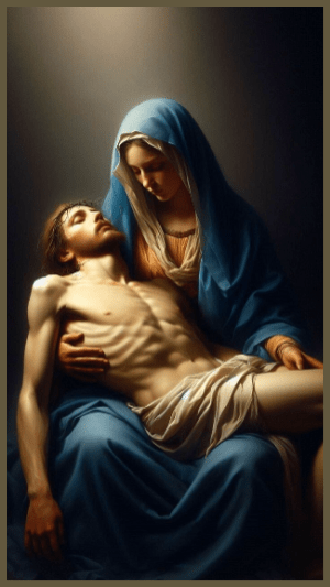 Mary’s role in her Son’s suffering is a crucial aspect of Christian theology, emphasizing her importance in the narrative of redemption. According to tradition, her presence at the Cross symbolizes the profound sorrow necessary to fulfill God’s plan, ultimately aimed at vindicating Eve and her descendants. This sorrow is seen as a way to make temporal restitution for the sins of the world, complementing her Son Jesus’ eternal sacrifice. Jesus’ death and resurrection are believed to have undone the Original Sin committed by Adam, thereby restoring the possibility of salvation and entrance into Heaven for humanity.