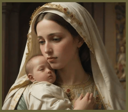 Jeremiah’s prophecy finds its ultimate fulfillment in the figure of the Blessed Virgin Mary. In her, a transformation occurs in which Eve is re-created to reflect her original state before the Fall. Mary is recognized as the spiritual “mother of all the living” and embodies the faithful Daughter Zion, nurturing all of God’s righteous children, as referenced in Psalm 87:5. In a significant act of divine favor, God looks upon Mary’s humility and elevates her from her modest beginnings, distinguishing her from sinful humanity. She becomes not only God’s faithful and chaste spouse but also the mother of the Divine Messiah. Through the Holy Spirit, God enables Mary to express her devotion fully, allowing her to maintain a loving relationship with Him as His immaculate bride and the mother of His Only Begotten Son.